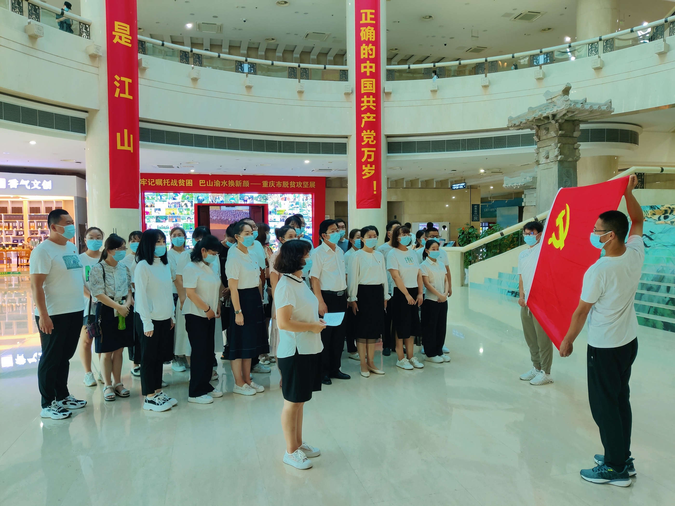 7月1日,培训班全体党员前往重庆中国三峡博物馆开展主题党日活动。博物馆展厅内,大家在党旗前重温入党誓词,热烈庆祝建党101周年。博物馆里的一件件文物,诉说着光辉的三峡文化;一幅幅图片,展示着重庆人民在世界反法西斯战争中做出的贡献。感受无产阶级革命家的源远流长的中华文明、不屈不挠的民族精神,激烈着全体奎屯教育人为扎根基层、为祖国教育事业奋斗的决心。