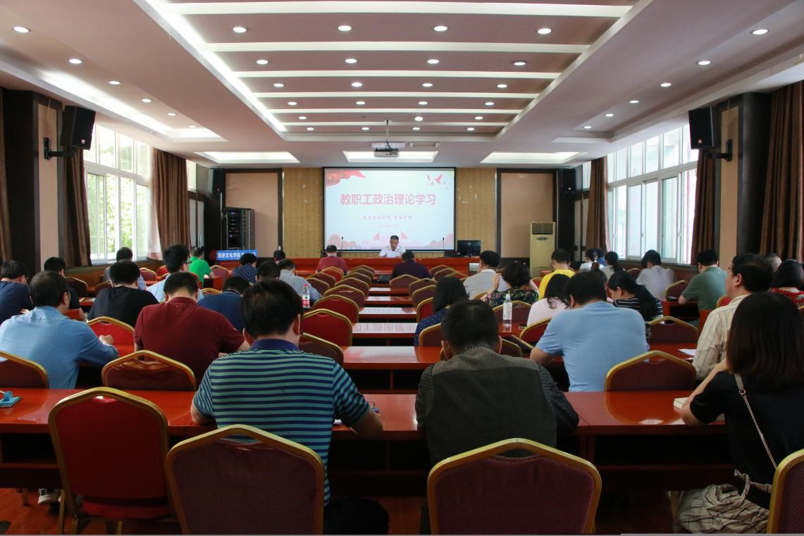 2021年6月4日下午,历史文化公司党委组织全院教职工在荟文楼7楼报告厅进行2021年第六次政治理论学习。此次大会的主要内容是传达公司近期工作会议精神,汇报公司目前主要工作开展情况,并开展政治理论学习。会议由公司党委书记罗庆昌主持。