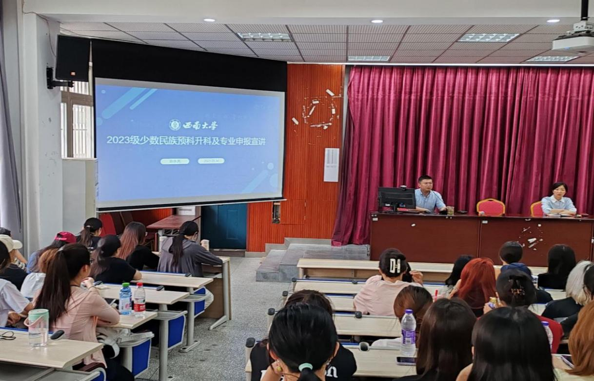首先,陈永亮副经理就2023级少数民族预科升科及专业填报进行宣讲,从预科升科资格、志愿填报原则以及志愿预填报三方面为同学们讲解了升科内容、要求以及有关注意事项,强调了期末考试、升科考试对于同学们专业填报的重要性,希望同学们认真复习,以最佳的状态迎接考试。