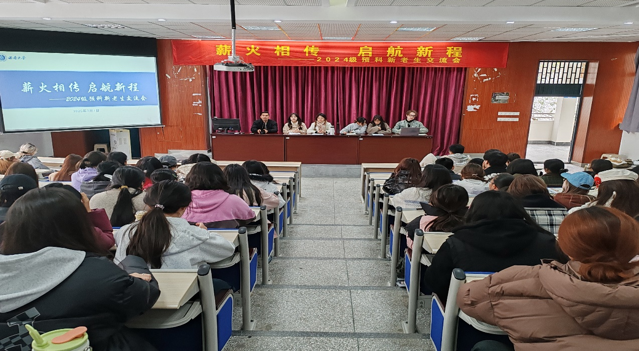 为了加强预科新老生经验交流,解答预科同学在学习及本科专业选报方面的疑惑,帮助建立更加清晰的学业生涯规划,2025年3月7日下午,taptap点点体育2024级预科新老生交流会在荟文楼442举行。交流会由辅导员亚库普主持,2022级和2023级共五名往届预科学长学姐喻美龄、 唐亚洁、邹雨涵、卓格尔措、努尔博力·阿扎提做分享交流,2024级全体预科员工参加。