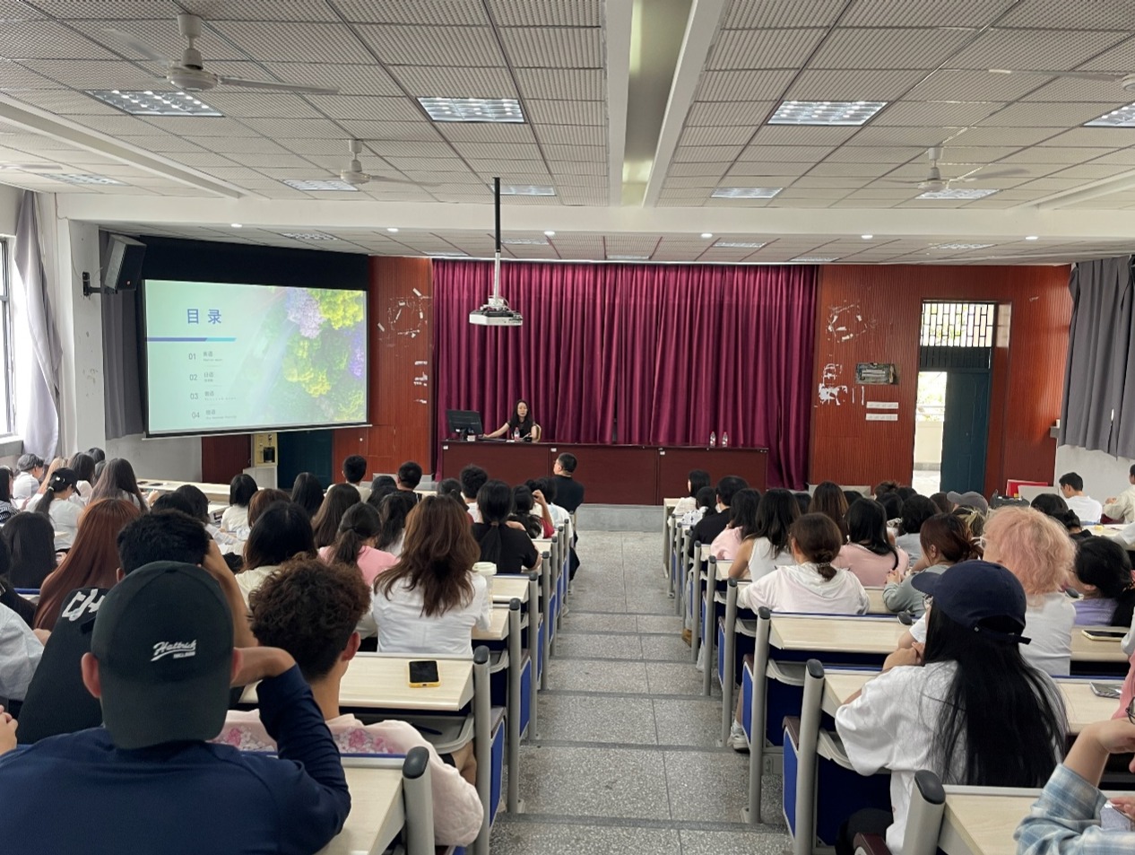 讲座第四期,公司邀请到外国语公司教学副经理付正玲来院开讲。付经理详细介绍了公司英语、日语、俄语、德语四个本科专业的专业概况、培养目标、课程设置和就业去向,同时对英语(师范)和英语专业的培养区别做出说明。付经理和大家分享了自己员工时期早起晨读,参与英语角,伴着收音机入眠的生动经历。学习路上经历了欢笑与苦痛共存,怀疑向笃定的蜕变。她真诚的代表外国语公司欢迎各位同学报考,也希望大家能够做好吃苦的准备和决心。