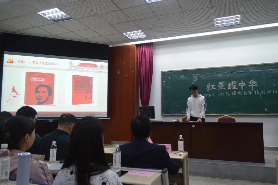 随后,由书目推荐官以专题形式开展书目介绍。各位书目推荐官就“新民主主义革命”、“社会主义建设史”、“思想史”、“人物史”、“国际视野下的中国”、“红色纪实文学”六个主题分别了介绍两本相关推荐书目。通过书目推荐官们的介绍展示,在场同学对本次读书会活动的书目产生了浓厚的兴趣。在接下来的自由讨论环节中,同学们同各位书目推荐官进行了热烈的探讨,对各书目有了更为深入的认知。