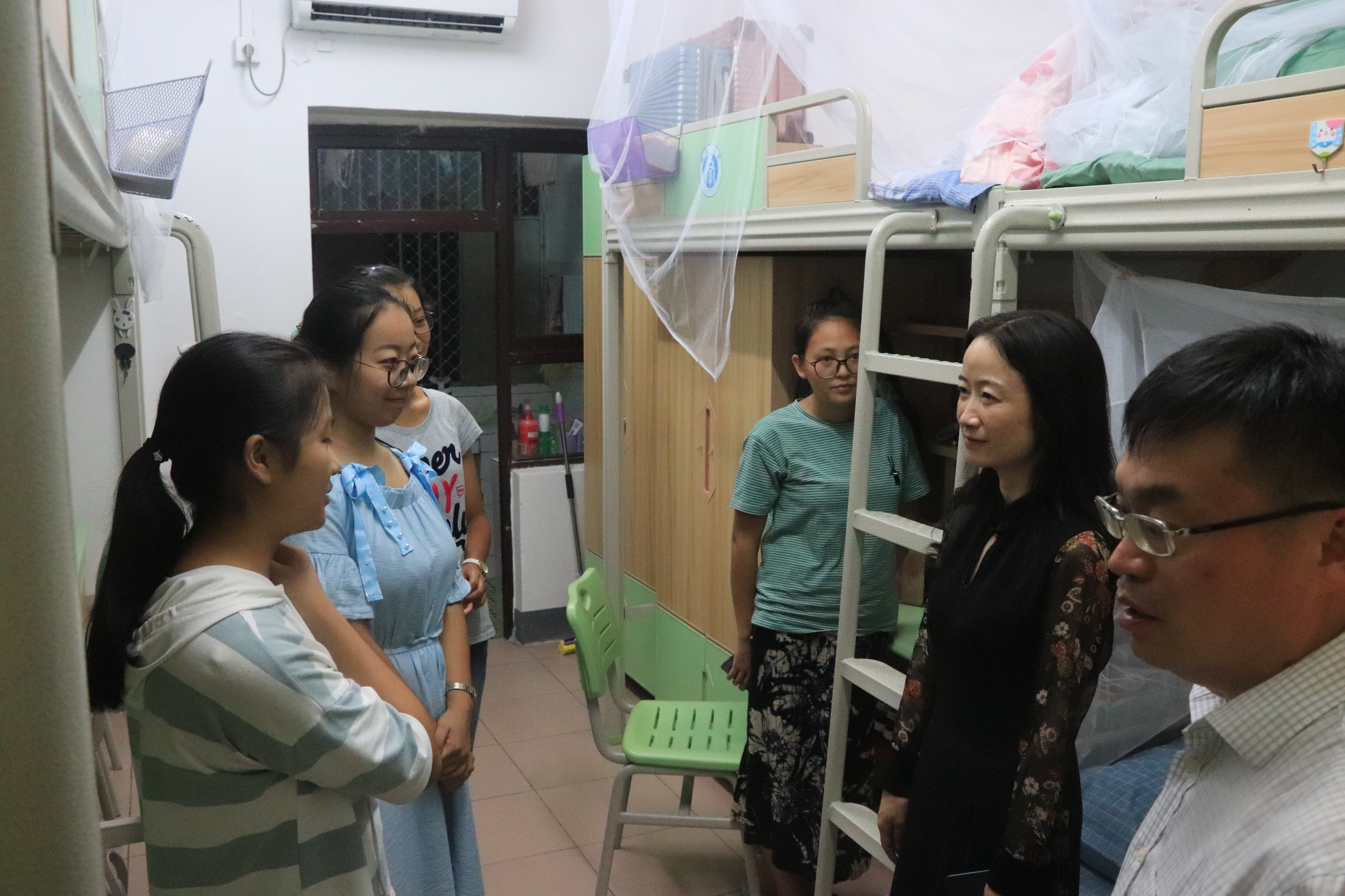 0 在本次看望走访活动中,公司领导及老师来到本科及本科新生所在的桃园四舍、桃园六舍和桃园二舍,仔细询问了新生们住宿的情况,对新生们对公司生活以及宿舍生活的适应情况进行了详细的了解,还与正在宿舍的新生家长进行了亲切地交谈,关心地询问家长来到公司后的情况。