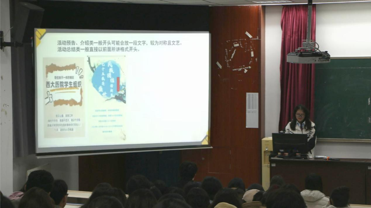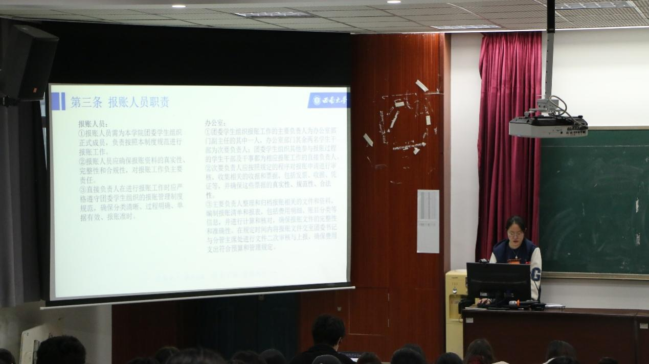 本次团课紧紧围绕工作技能培训和知识学习这一核心主题,由组织部、新媒体宣传中心、办公室三个部门共同对干部、干事进行专项培训。组织部干部王俊舒针对文件处理与名称规范这一重要内容,着重强调了撰写策划案及文件表格时的诸多要点,对干部、干事规范高效处理文件进行了指导。新媒体宣传中心干部冯心怡介绍了新闻稿书写的基本格式与注意事项,阐明了不同类型推文之间的差异,让干部、干事们对新闻稿的撰写有了更深入的理解。办公室干部商紫叶和袁嘉潞则对纪律管理条例规范和报账管理制度规范进行详尽介绍,让团学全体成员对公司团学组织的纪律管理和报账制度有更清晰的认识。