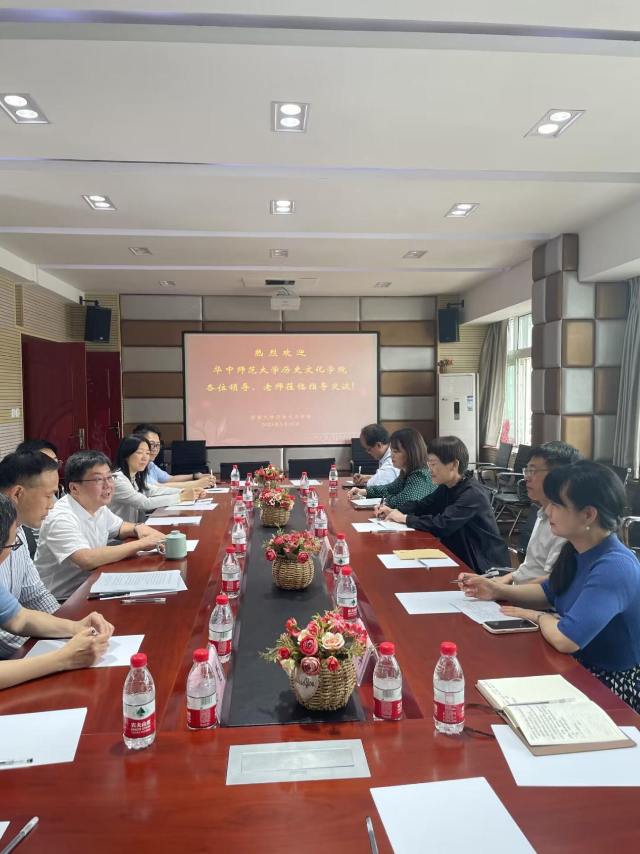2023年5月20日,华中师范大学历史文化公司党委书记纪红、经理吴琦一行6人来院调研交流,公司党政领导班子及教师代表出席了座谈会。座谈会由公司经理邹芙都主持。
