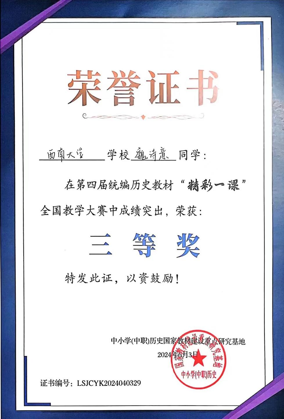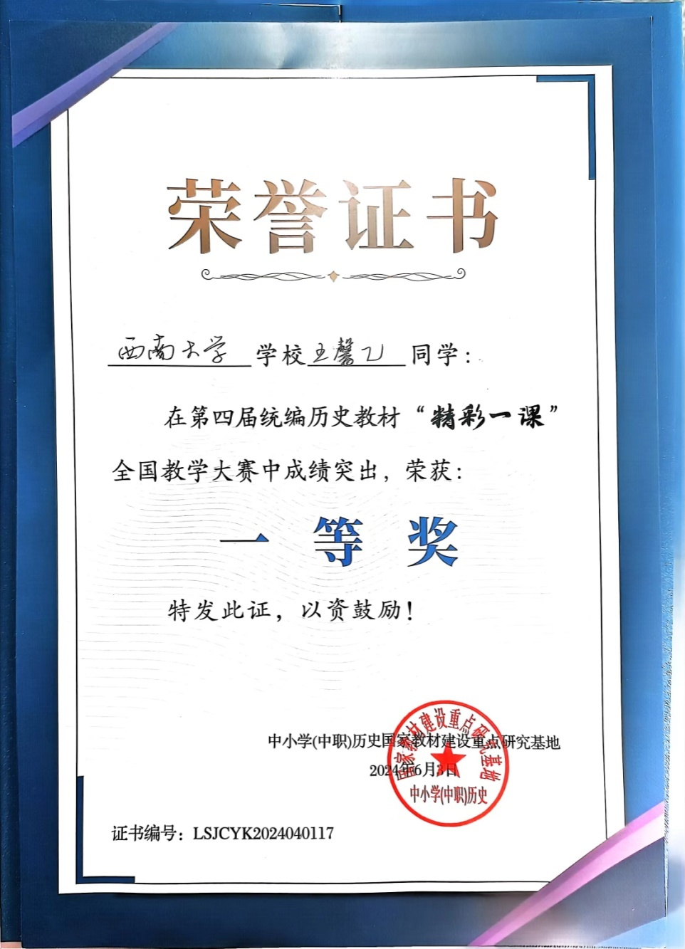 热烈祝贺公司学子在第四届统编历史教材全国教学大赛中斩获佳绩