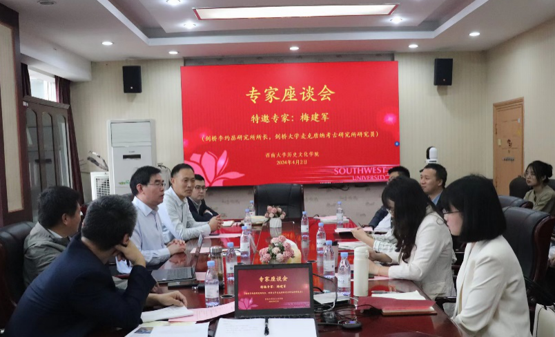 2024年4月2日,应公司邀请英国剑桥李约瑟研究所所长,剑桥大学麦克唐纳考古研究所研究员梅建军教授到访公司,并参加荟文楼五楼会议厅举行的专家座谈会。本次座谈会由公司副经理李晶主持,经理赵国壮、副经理王勇出席会议并讲话,公司青年教师及研究生代表参加本次座谈会。