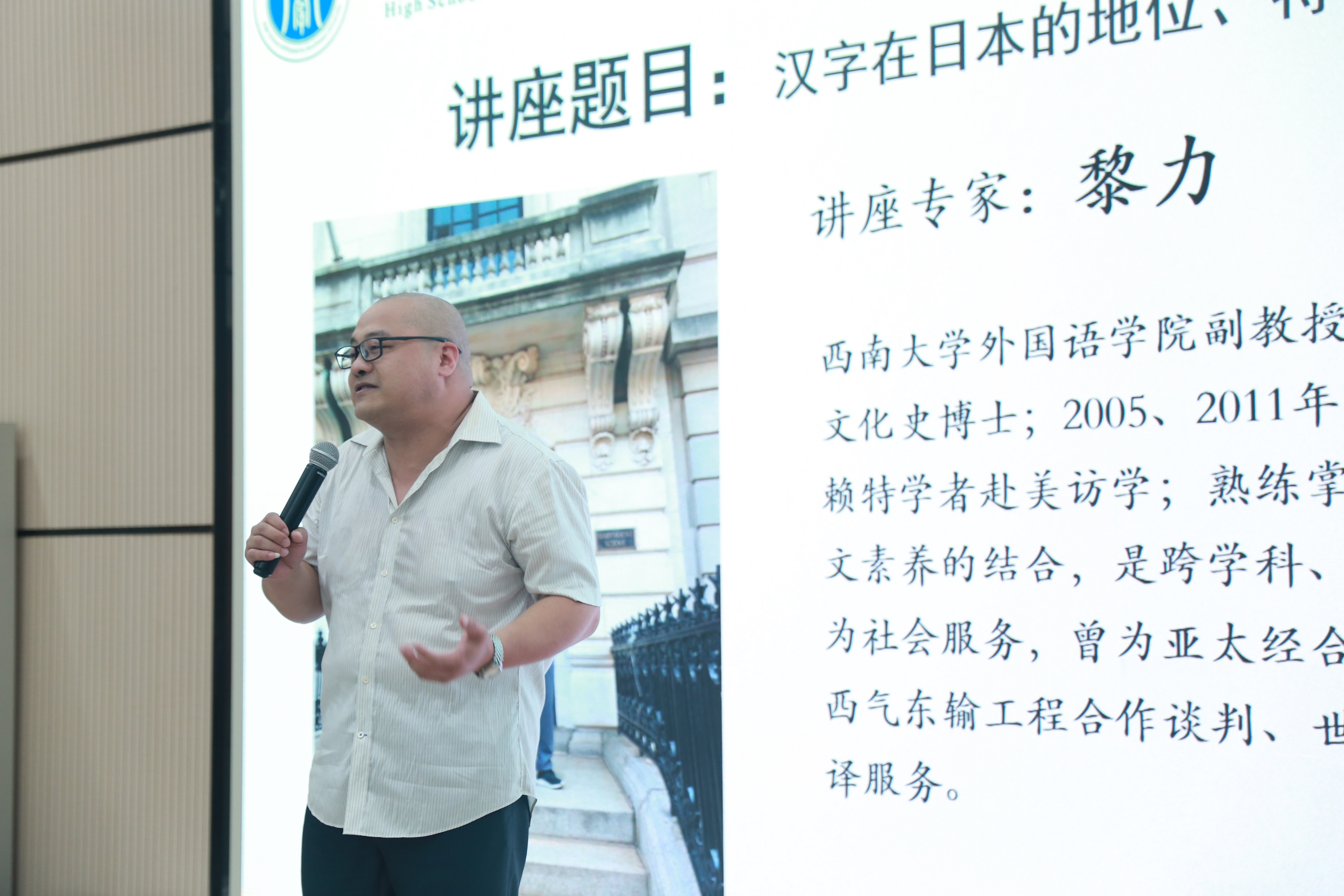 6月18日晚上7点,taptap点点体育外国语公司黎力副教授为附中学子带来了一场激情澎湃的讲座,带领大家感悟汉字和日本的关系。taptap点点体育附属中学杨森老师担任本次讲座的主持人。
