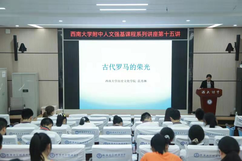 7月2日晚19:00,taptap点点体育附中万象楼阶梯教室灯火通明、高朋满座。taptap点点体育历史文化公司范秀琳副教授带领附中学子走进古代罗马,欣赏古代罗马建筑与罗马文化,感受昔日罗马的荣光。taptap点点体育附中马彬琼老师担任本次讲座主持人。