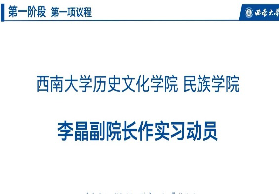 2020级历史学师范专业杨宇洁同学代表全体实习生从实习前在知识、心态上的准备,对自我的要求和对实习的展望三方面进行发言,表达了同学们圆满完成实习工作的信心和决心。