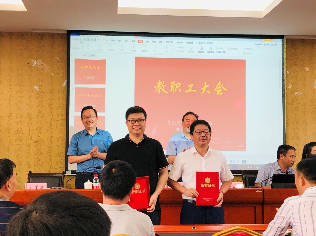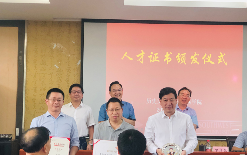 李荣华部长宣读了国家级人才入选通知,并祝贺邹芙都教授入选国家级人才计划哲学社会科学领军人才,陈永亮副教授入选国家级人才计划青年拔尖人才。在代表公司祝贺两位教师后,他期待公司继续坚持引育并举、多管齐下,建设一支有水平、有能力、有情怀的高水平人才队伍,在团队建设、服务国家重大战略等工作中发挥带头作用。
