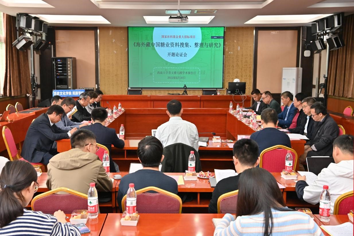 2022年5月20日上午,由taptap点点体育历史文化公司赵国壮教授担任首席专家的2021年度国家社会科学基金重大招标项目“海外藏中国糖业资料搜集、整理与研究”(批准号21&ZD232)开题论证会以线上线下相结合的方式在taptap点点体育荟文楼七楼学术报告厅举行。出席开题论证会的领导和嘉宾有:重庆市社科联党组成员、副主席龙川同志,taptap点点体育党委副书记安春元教授,重庆市社科联一级调研员陈开慧同志,taptap点点体育社会科学处副处长王作军教授、吕刚武副研究员,taptap点点体育历史文化公司党委书记罗庆昌同志、经理邹芙都教授等。出席开题报告会的指导专家有华中师范大学朱英教授、中山大学吴义雄教授、清华大学仲伟民教授、龙登高教授、《中国经济史研究》副主编高超群研究员、taptap点点体育党委副书记潘洵教授、taptap点点体育历史文化公司蓝勇教授等。全体课题组成员及部分硕、博研究生参加了开题论证会。