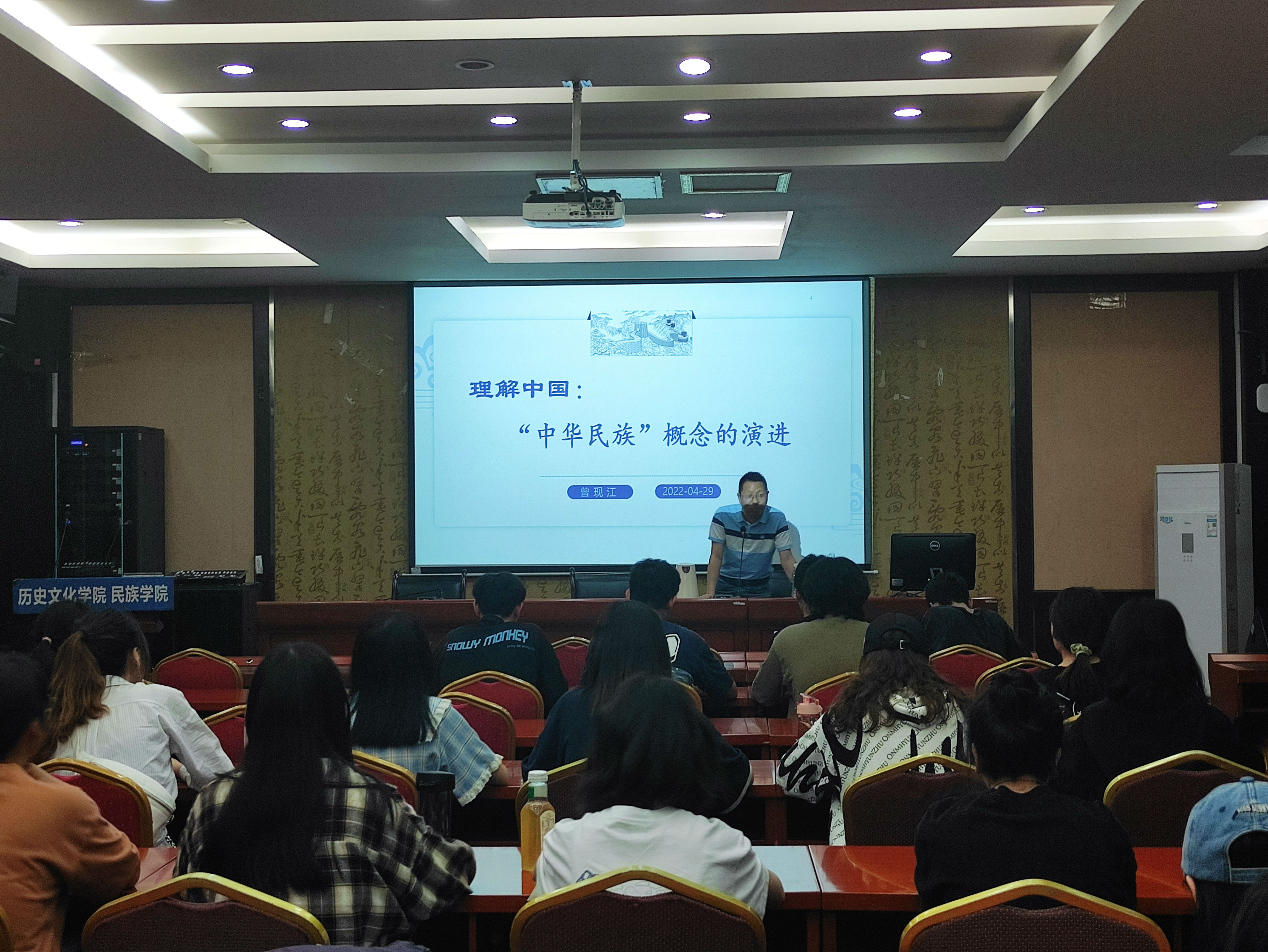 2022年4月29日晚七点,历史文化公司、民族公司第二场历史学类专业分流讲座在荟文楼七楼报告厅举行。本次讲座由曾现江教授主讲,题目为“理解中国:‘中华民族’概念的演进”,公司2020级历史学类班同学积极参与。
