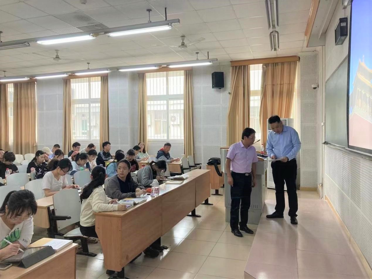 2021年10月9日,公司副董事长赵国华教授来到第八教学楼,听取公司青年教师王刚副教授为2020级历史学(师范)专业讲授的《中国近代史》课程。公司党政领导参加了听课活动。