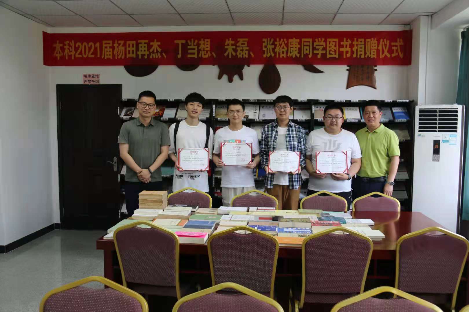 6月23日上午,公司本科2021届毕业生杨田再杰、丁当想、张裕康、朱磊图书捐赠仪式在历史文化公司资料室举行。公司副经理王勇、团委书记李立参加仪式。