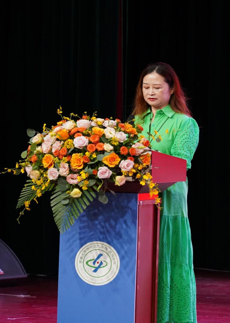 倾囊相授,金针度人。任课教师代表孙卫红副教授用几点“提示”,寄语新生自主、自立、自强。孙老师强调,选择决定命运,与上进同行,方可学有所成,与懈怠为伍,只能抱憾青春。她勉励新生以真善美为人生尺度,感恩师友,感受责任;以身心健康为生活基石,博闻强识,纵马韶华。