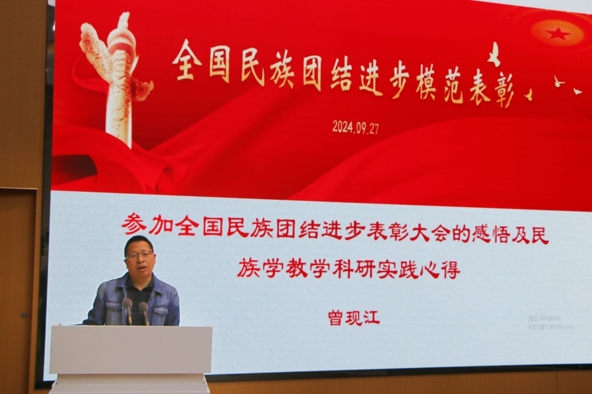 随后,曾教授深入解读了习近平总书记在全国民族团结进步表彰大会上的重要讲话精神,与大家分享个人学习感悟。