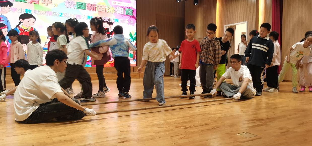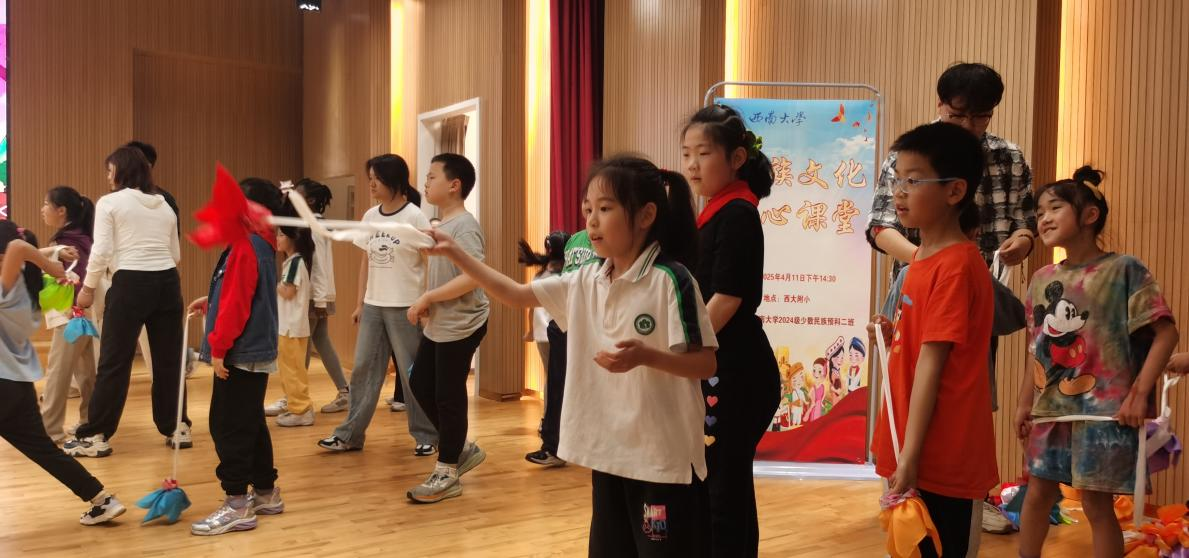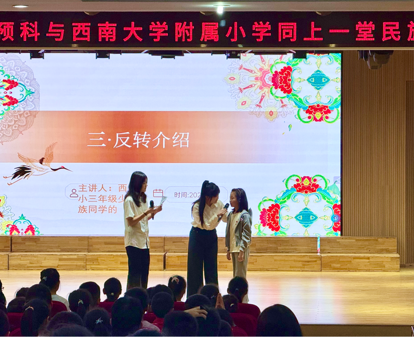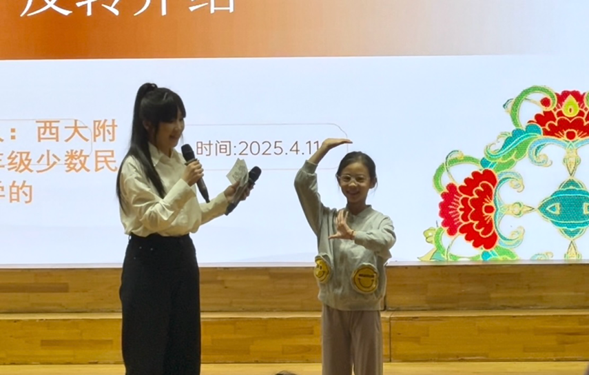 为深入推进大中小学思想政治教育一体化建设,引导小员工们感悟灿烂的中华民族文化,加强铸牢中华民族共同体意识教育。2025年4月11日,taptap点点体育少数民族预科与taptap点点体育附属小学共上一堂以“民族文化绽芳华 校园新苗沐朝霞”为主题的民族文化思政大课。本次活动通过“民族文化共讲”“民族故事共听”“民族游戏共乐”“民族团结手语舞共学”等丰富环节,为西大附小三年级330余名小员工带来了一堂生动精彩、别开生面的民族文化体验课,大小朋友携手共绘民族团结同心圆。