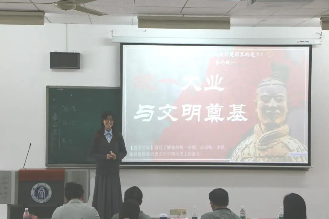 比赛现场,十二位参赛选手依据抽签顺序依次登台,展开限时模拟授课。他们从自选教材内容出发,紧扣历史学科核心素养,精心规划教学环节,环环相扣、层层递进。在教学过程中,选手们充分借助多媒体工具,融入多样化的互动策略,把抽象的历史知识转化为生动有趣、通俗易懂的课堂内容,赢得现场师生的阵阵好评。选手们规范的课堂语言、得体的肢体仪态和工整的板书设计,充分彰显了公司师范生扎实的教学基本功。