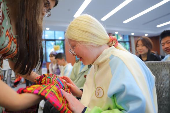 为深入推进大中小学思政课一体化建设,努力打造“民族文化+思政”少数民族预科特色活动品牌,2025年11月7日,taptap点点体育2025级少数民族预科员工来到重庆市特殊教育中心,与一群“特殊的孩子”—视障青少年同上一堂民族文化课。本次活动以“听见民族韵牵手共成长”为主题,通过“听”“触”“品”“投”等沉浸式民族文化体验的形式,引导孩子们在互动中感悟中华民族文化魅力,进一步厚植中华民族共同体意识,成为校际协同推进思政教育的生动实践。