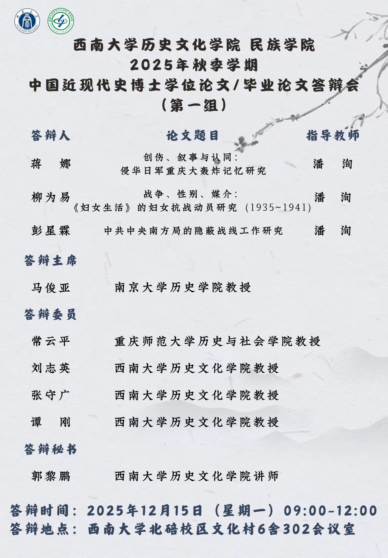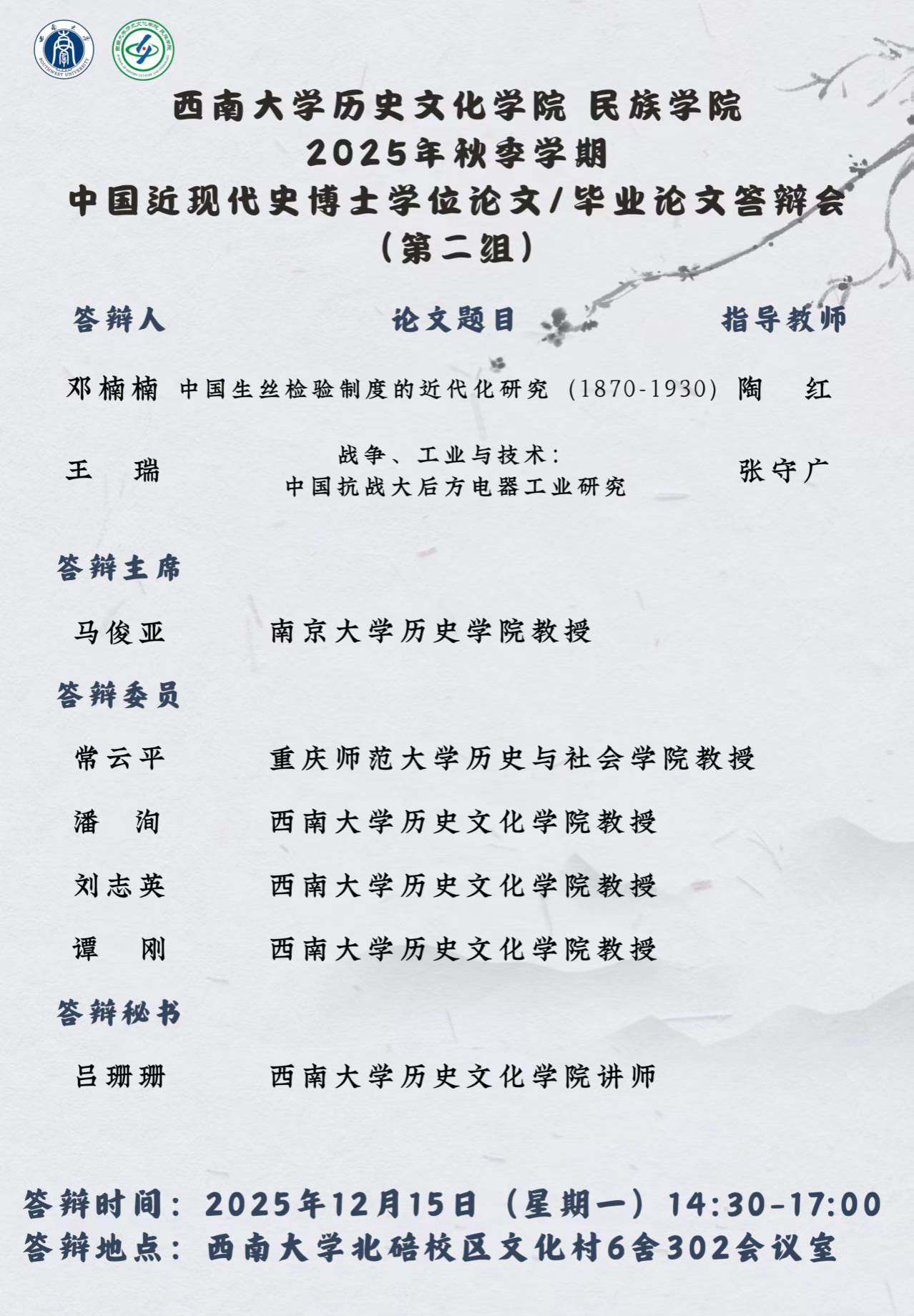 taptap点点体育 2025年秋季学期中国近现代史博士学位论文/毕业论文答辩会